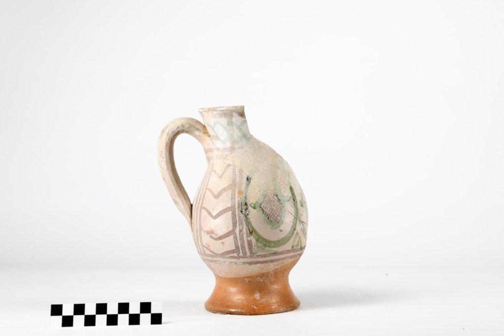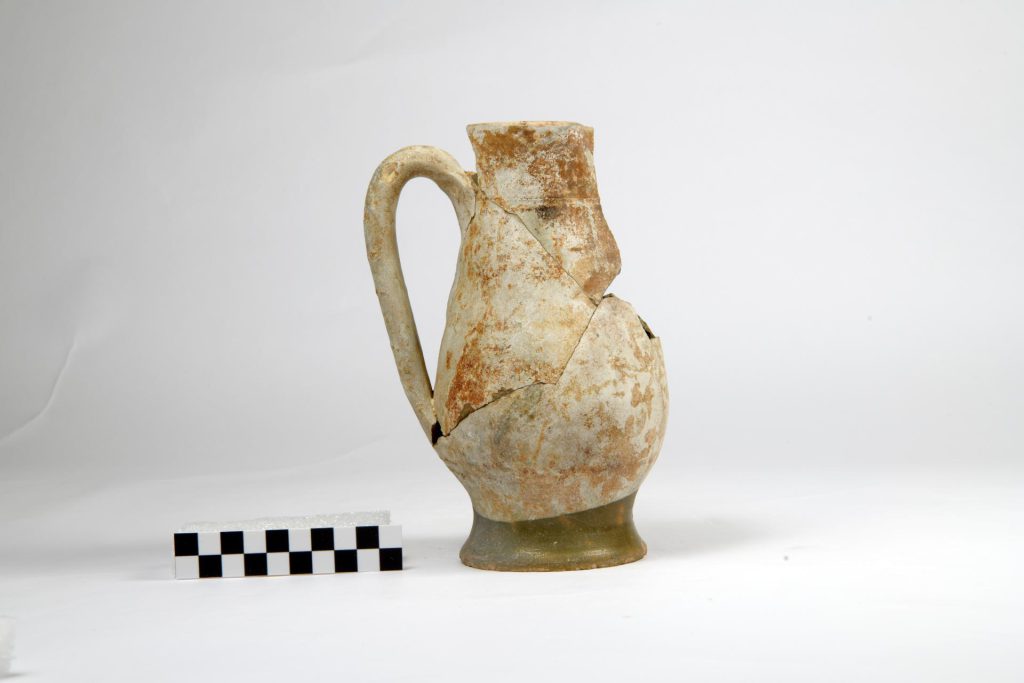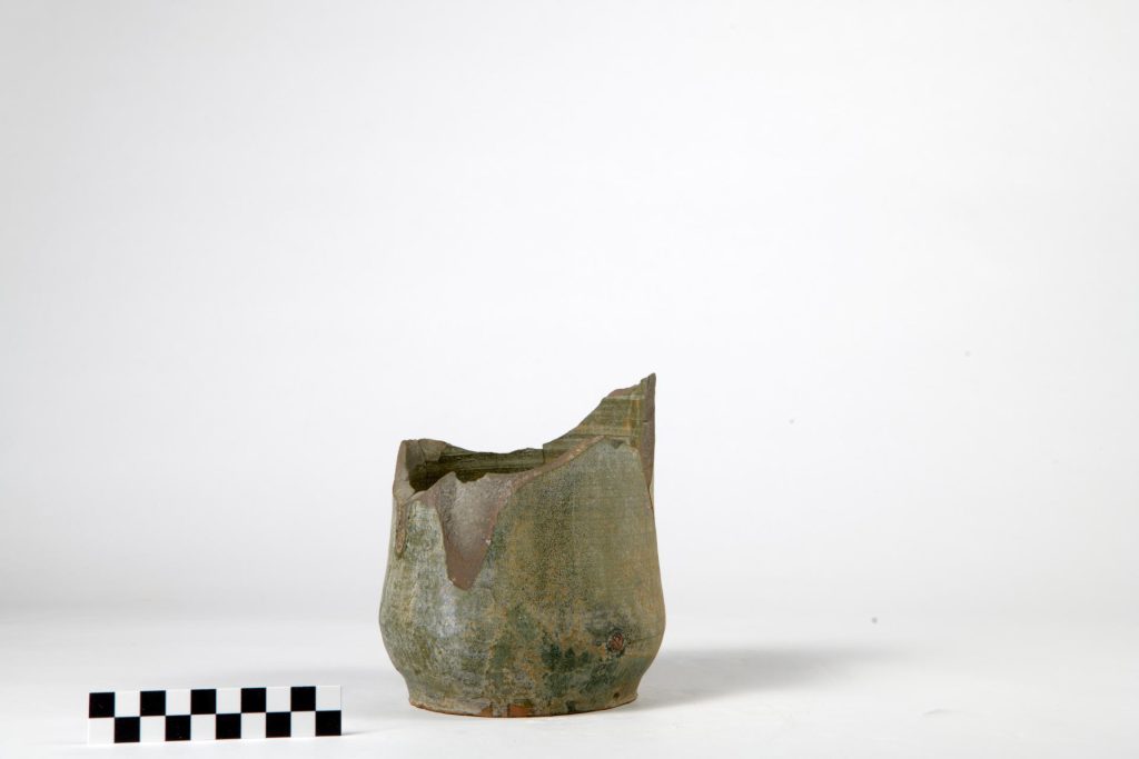 Dentro al pozzo, con il bicchiere, c’era la spazzatura del palazzo: cocci di vasi per la cucina, vecchie tubature di terracotta, frammenti di bicchieri e bottiglie, e un elegante tubetto per cosmetici di vetro viola di origine orientale.