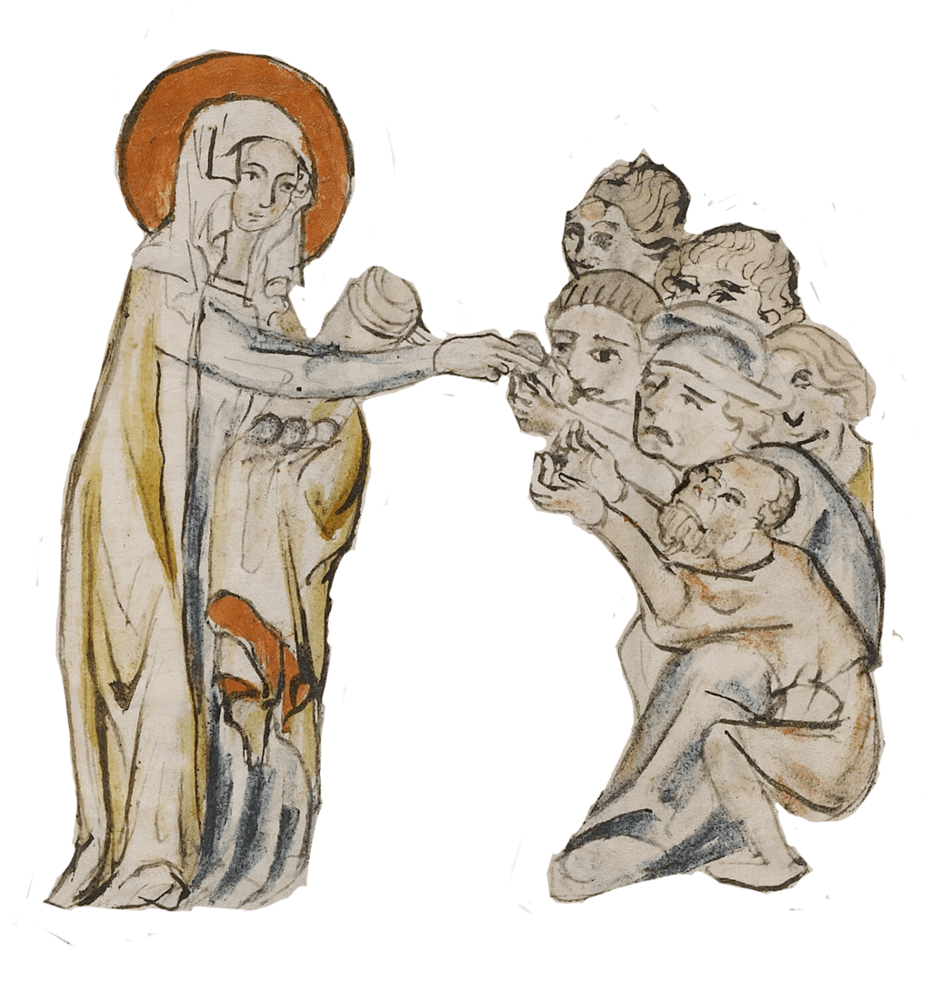 In un tempo in cui l’acqua era spesso impura, il marito di Edvige avrebbe di gran lunga preferito che la moglie bevesse vino. La leggenda narra che una volta, il principe Enrico prese il bicchiere della moglie per controllare cosa stesse bevendo e in quell’istante l’acqua per miracolo diventò vino. Così lui smise di biasimare lo stile di vita della moglie e lei poté continuare a vivere come voleva.